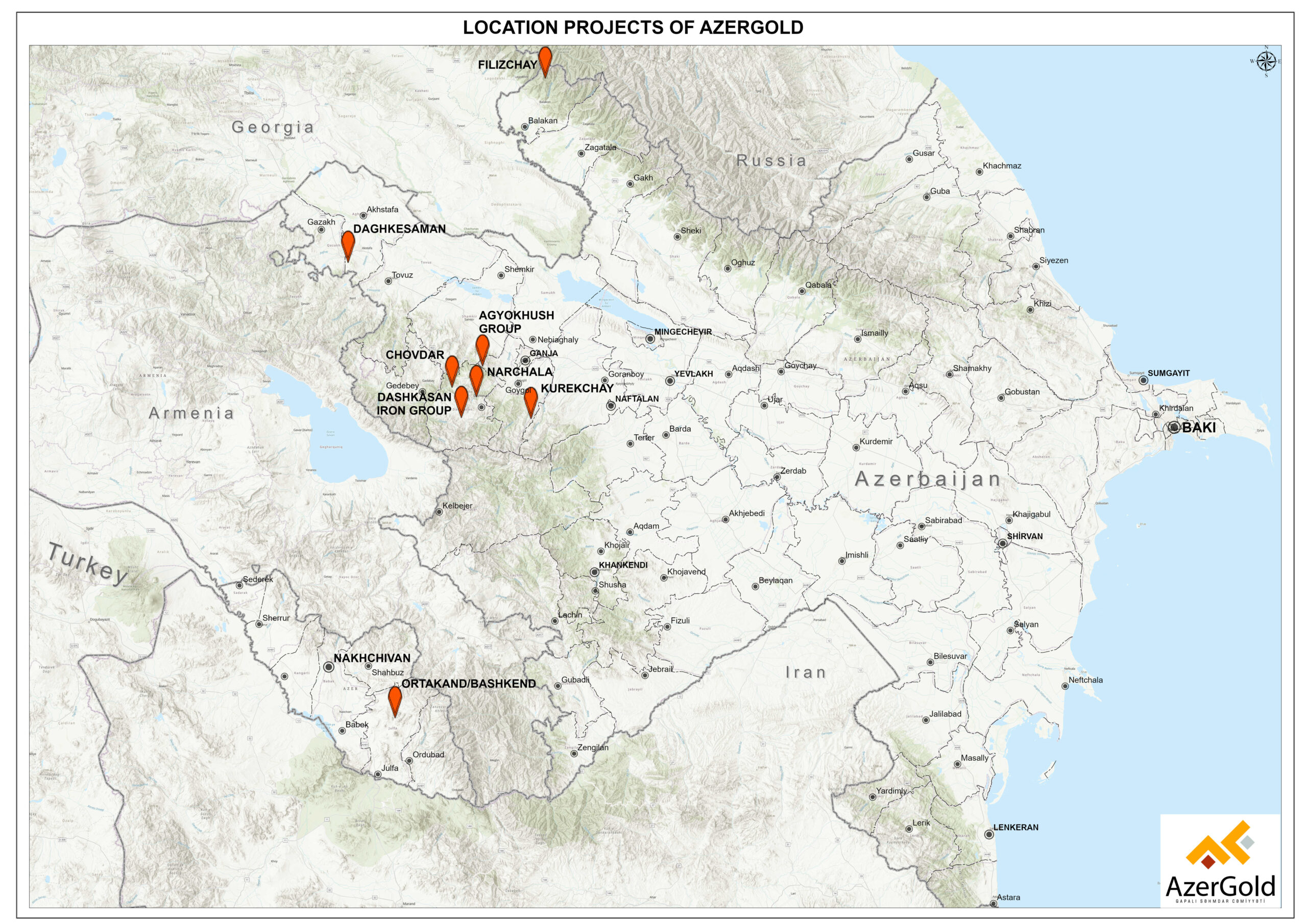 ЗАО «AzerGold» владеет лицензиями на разработку множества месторождений: Човдар, Агйохуш, Мерек, Туллалар, Филизчай, Мазымчай, Дагкесаман, Ортакенд, Башкенд и др. На Рисунке 1 представлена карта, на которой отмечены активы компании. Несмотря на внушительный набор активов, компания продолжает вести геологоразведочные работы с целью выявления новых перспективных площадей. В данной статье описывается применение ГГИС Micromine Origin & Beyond при производстве геологоразведочных работ на месторождении Ортакенд.