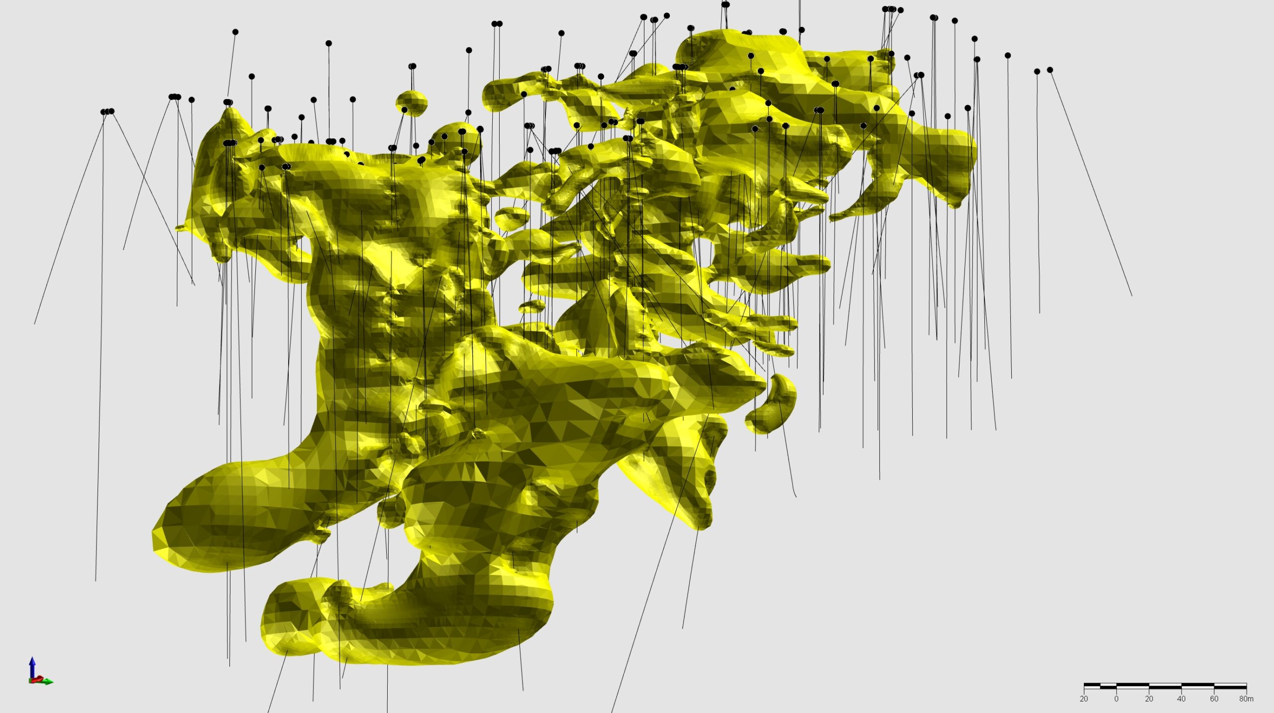 После завершения геологоразведочных работ было выполнено построение каркасной и блочной моделей месторождения. В ГГИС Micromine Origin & Beyond реализованы два метода построения каркасной модели: традиционного (эксплицитного) и имплицитного (условного).
