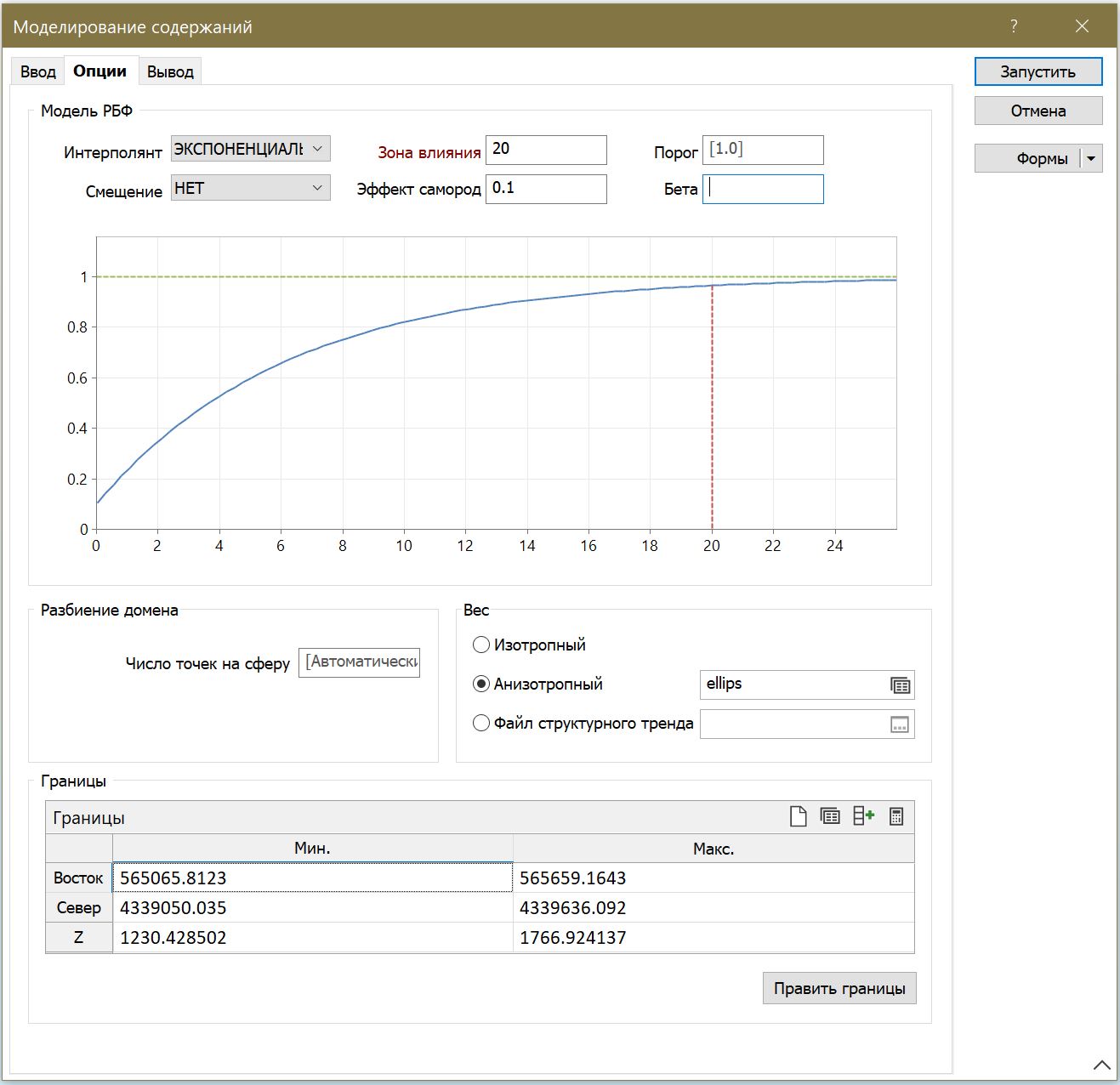 Рис 2. Вкладка Опции функции Моделирование содержаний