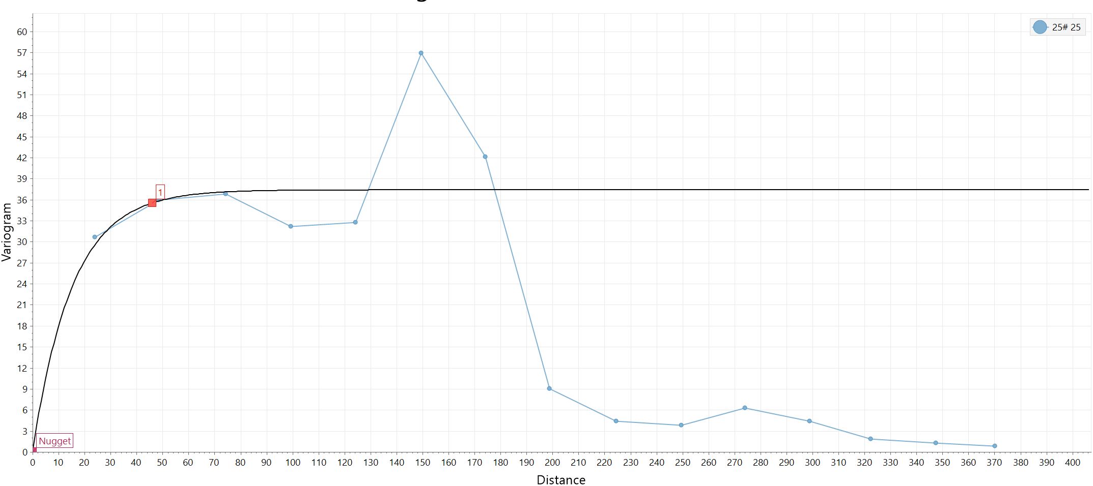 На основании каркасной модели была построена блочная модель месторождения, с помощью которой были оценены запасы золота. В ходе моделирования была построена вариограмма вдоль по скважинам. На основе вариограммы были определены эффект самородка, порог и зона влияния.