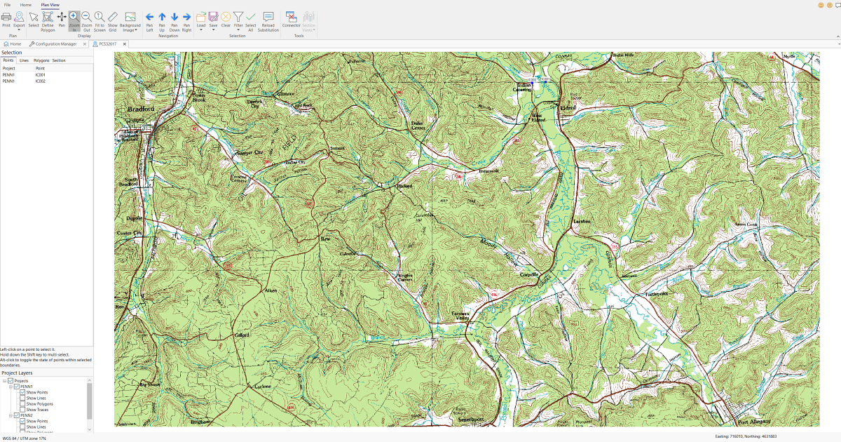 • Micromine Geobank позволяет просматривать данные в контексте благодаря геопривязке изображений в виде План, которая обеспечивает дополнительный уровень визуальной проверки с учетом окружения.