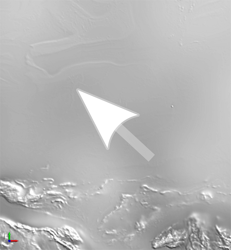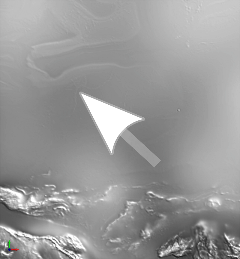 Even without enhancement, you can easily see areas of high geophysical relief at the bottom of the image. Not so obvious are the areas of low relief near the top.