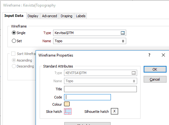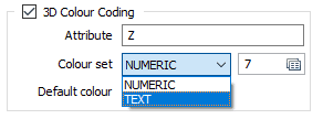 The ability to colour code the triangulation, based on elevation, adds to the visual impact. The colour coding is based on a wireframe attribute. Unlike a field in a Micromine data file, attributes are undefined in terms of whether the content should be treated as Numeric or Text. This requires user input and, in 2018, the attribute classification has been clarified.