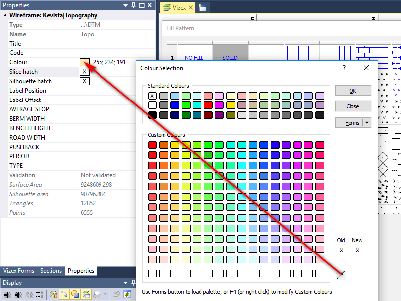 Here is a handy tip, that you can use anytime you want to make a new colour selection match a colour that you already using. Let’s say that are editing the Slice hatch for a wireframe, and you want the foreground colour to be the same as the wireframe colour.