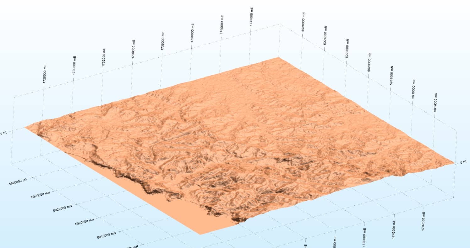 The ability to colour code the triangulation, based on elevation, adds to the visual impact. The colour coding is based on a wireframe attribute. Unlike a field in a Micromine data file, attributes are undefined in terms of whether the content should be treated as Numeric or Text. This requires user input and, in 2018, the attribute classification has been clarified.