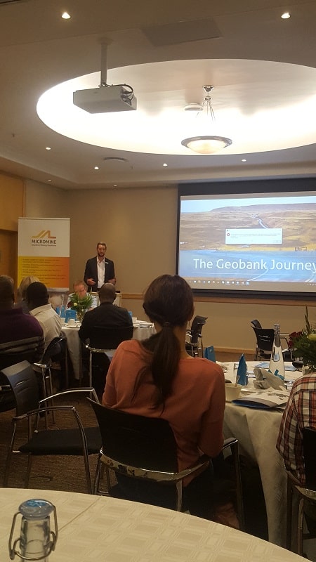 Once breakfast concluded, Monray introduced Daniel Oosthuizen, MICROMINE Africa’s Senior Geobank Specialist, who presented the Geobank Journey as well as the new features and functionalities that Geobank 2018 will provide to our clients. Following this, Daniel conducted a brief demonstration of Geobank 2018 showing the functionalities in real time while providing practical examples of how this would assist users in their day to day operations.