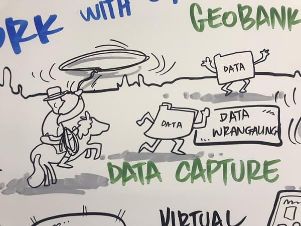 Next to present was Dale Harris, Manager – Data at CSA Global in Perth and a strong advocate for the use of structured databases for the management of Geological Information. Harris explained the problems facing the resource industry around data management and what is and what isn’t an appropriate solution. Highlights of the presentation were the discussion on Data Wrangling, a common problem for any data manager regardless of whether they are a consultant or DBA at a small exploration company. It is often common to be handed a hard drive with a mix of Excel files, named the same or with _copy1. This was documented by Fern as: