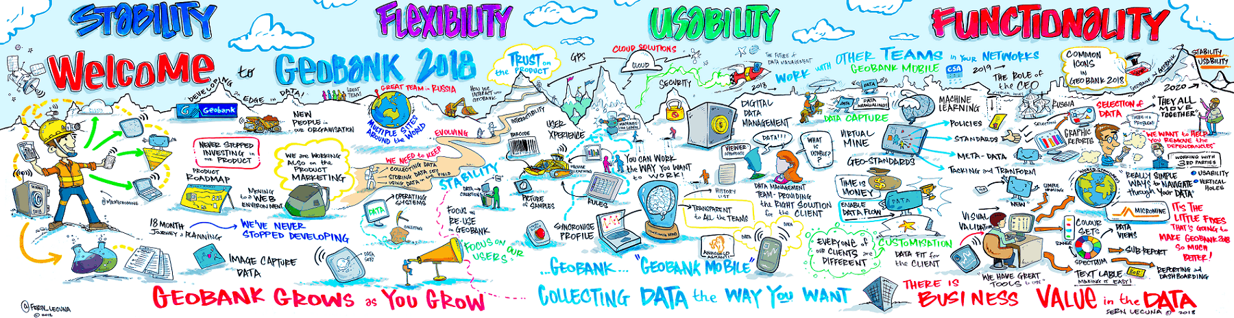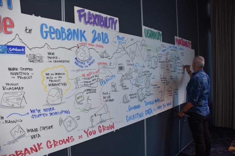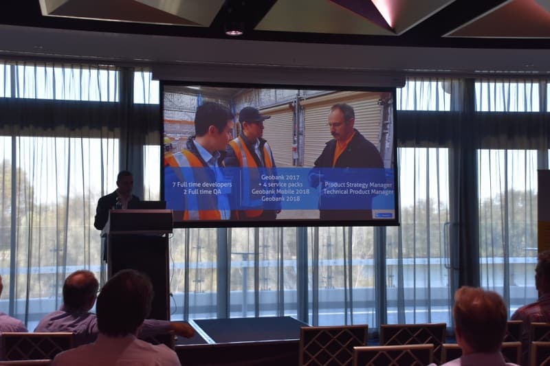 Product Strategy Manager for Geobank, Mark Gabbitus, presented on the journey that the Geobank team has been on towards the release of Geobank 2018. The aim has been to regenerate the team, the product and relationships with clients over the last 18 months and has included hiring new developers, QA staff and building out a totally new product management team.