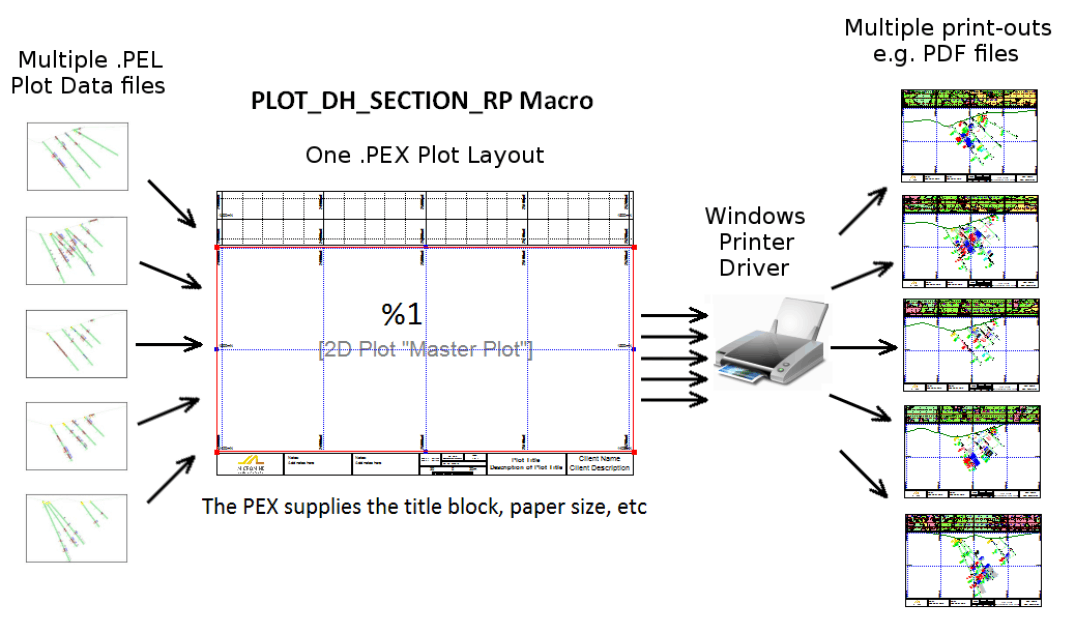 Plotting is no exception, and the process of plotting data across multiple sections is a classic scenario that benefits from automation. Automating the Plot Editor makes it easy to send multiple plots, such as drill sections at the end of a drilling programme, to an output device without having to sit at your computer and generate each one manually.