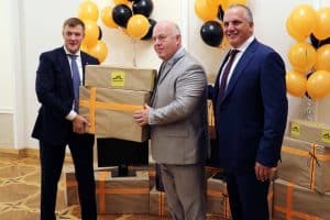 Representatives from MICROMINE’s Russia office attended the event where they presented the University staff with two gifts. The first gift was a symbolic glass plaque with a 3D picture of the first Moscow Mining Academy’s building constructed in 1918. The second gift was ten new computers, each with dual monitors and Micromine software licenses for the students at the Mining Institute to use throughout their studies.