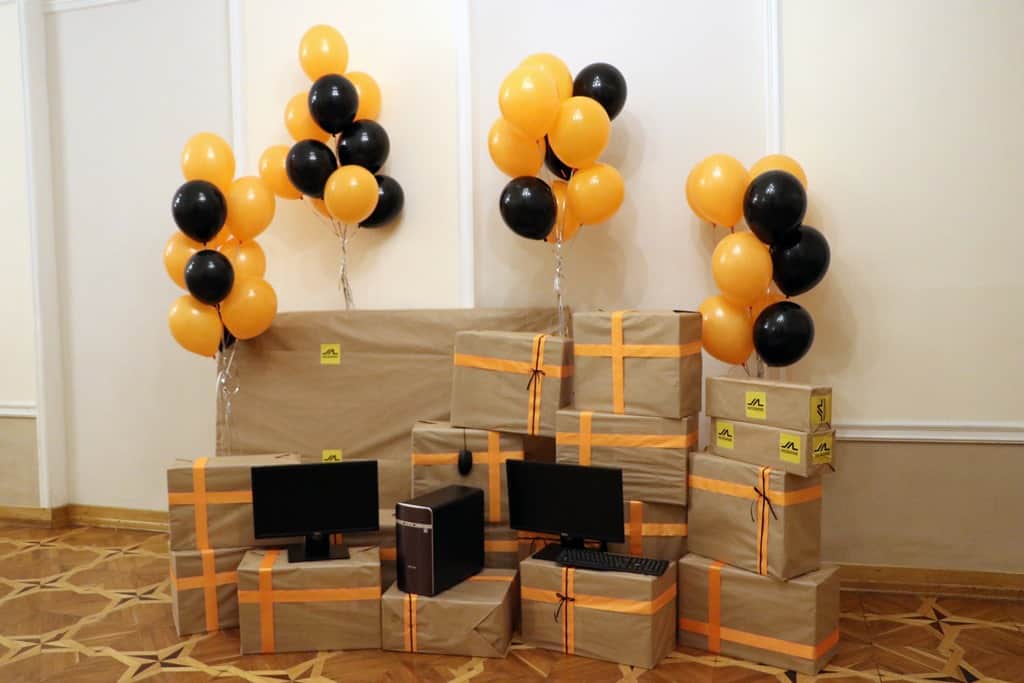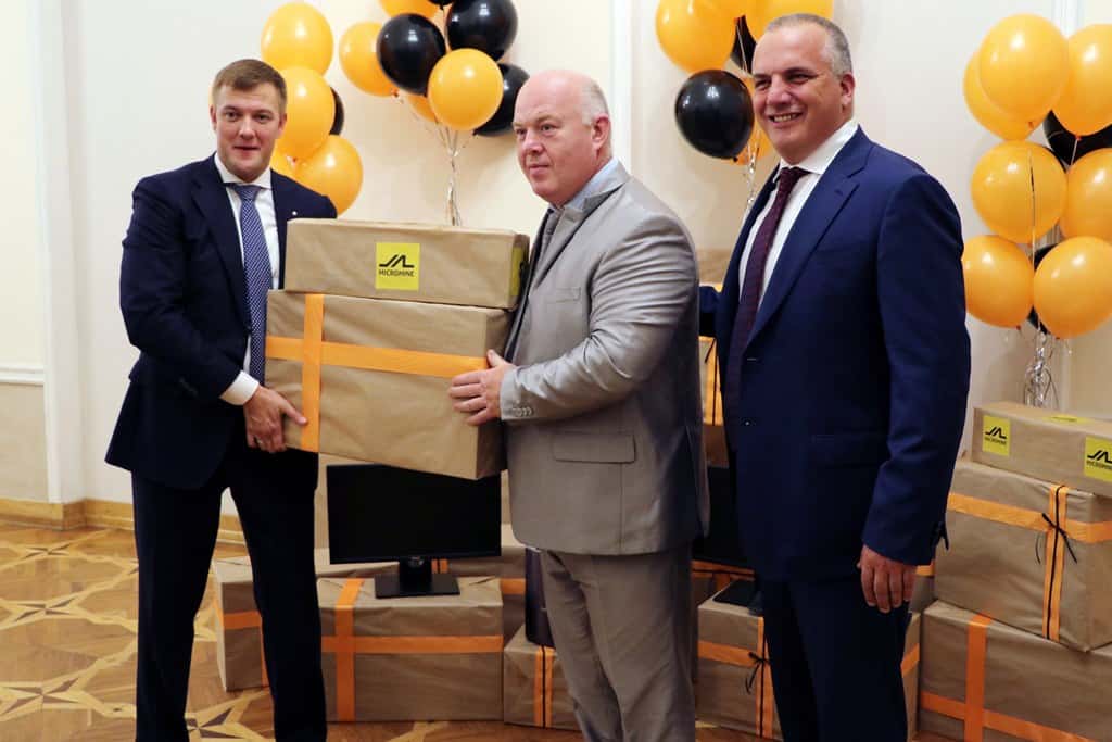 Representatives from MICROMINE’s Russia office attended the event where they presented the University staff with two gifts. The first gift was a symbolic glass plaque with a 3D picture of the first Moscow Mining Academy’s building constructed in 1918. The second gift was ten new computers, each with dual monitors and Micromine software licenses for the students at the Mining Institute to use throughout their studies.