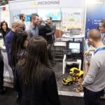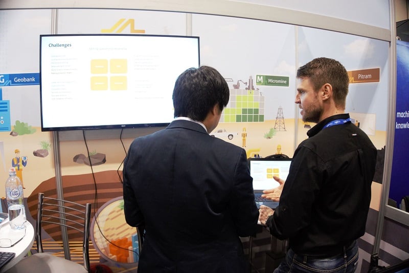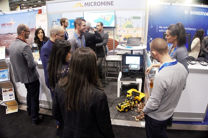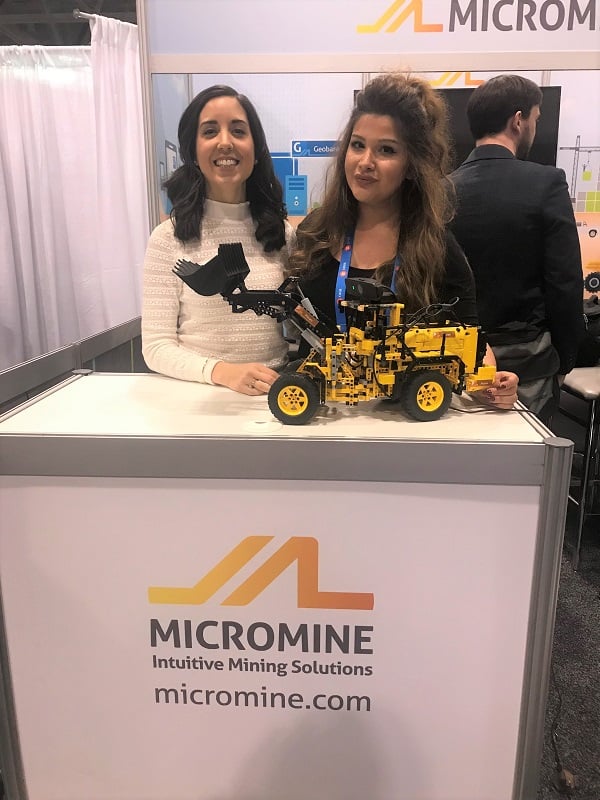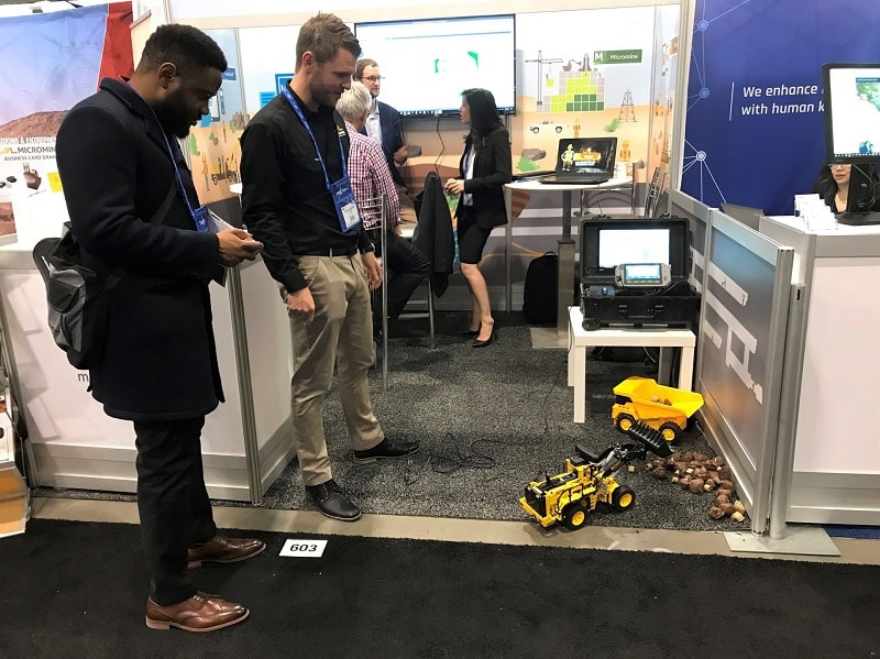 Although most demonstrations were focused on Micromine 2020 and Geobank/Geobank Mobile 2018, it was our Pitram’s Artificial Intelligence loader that stole the show. Making its’ first tradeshow appearance, the remote-controlled Load, Haul & Dump AI loader circled around our booth with a camera on top connected to Pitram. The lego-designed device loaded rocks into the truck at our booth, while observers saw the results from the neural network live on the mobile tablet. Audiences were impressed by our technology and huddled around the MICROMINE booth while demonstrations were taking place, resulting in an increase of inquiries regarding MICROMINE products.