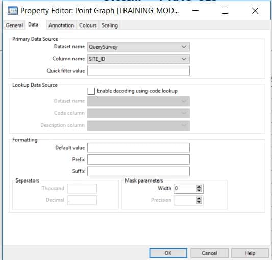 Prior to Geobank 2018 if an administrator wanted to make changes to an object in a graphic report they would have to find the object they wish to change, go into the properties and search through the tabs looking for objects which the current object is dependent on, the experience would look something like this: